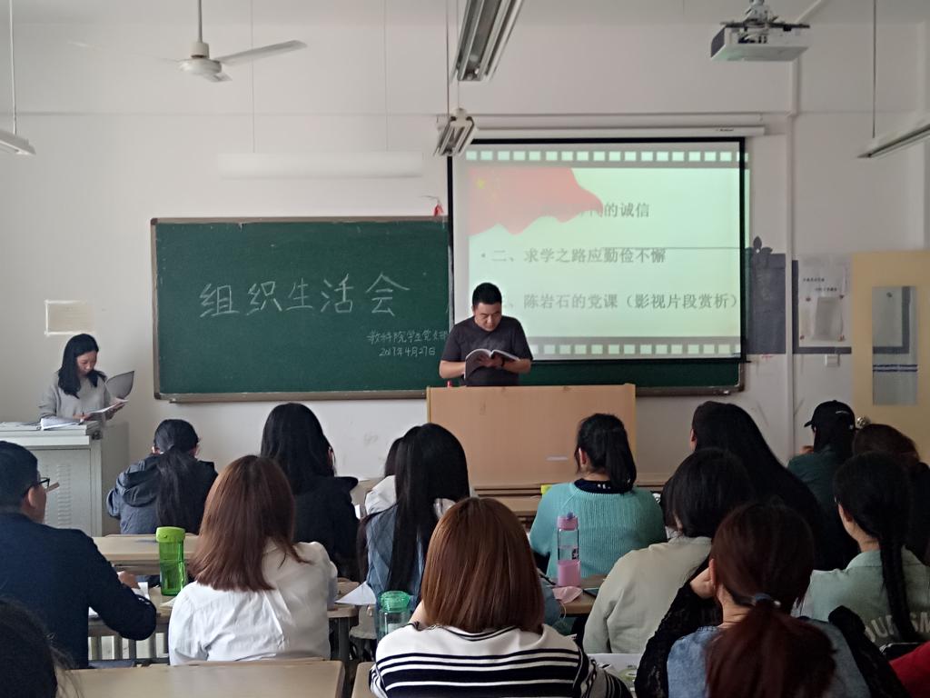 会议开始,周姗老师给大家播放了一段视频,视频内容是“陈岩石的党课”,通过观看这个视频,引导大家发表自己的想法。作为大学生党员,最重要的就是要纯洁自己的入党动机,端正的信念,学习第一代党员的优良品质,不忘我党的革命根本。