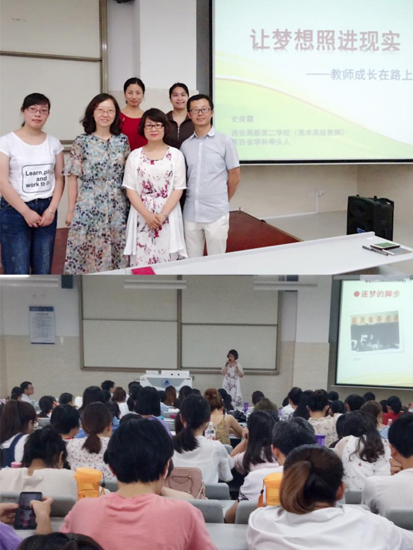 2018年6月15日下午,教育科学学院特别邀请实践基地学校、西安高新第二学校艺术中心教研负责人、美术高级教师史美霞老师做客我院“师说论坛”,为九月份即将参加教育实习的2015级小学教育本科班、2017级小学教育专升本班、2016级小学教育专科班近200名学生做了《让梦想照进现实——教师成长在路上》的专场报告,报告由课程与教学系副主任高洁主持,教育学系副主任张强以及曹春艳老师、史晓荣老师和江露露老师参加了本次讲座。