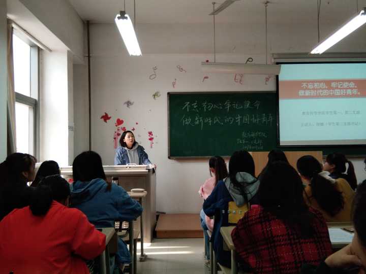 2017年11月8日,为了深入学习领会习近平总书记十九大报告精神,强化青年大学生的政治素养,增强青年党员的理想教育,教育科学学院学生第一、第二支部组织主题为“不忘初心,牢记使命,做新时代的中国好青年”的学习教育,教育科学学院学生第二支部书记周姗为全体学生党员、积极分子、班团干部上了一堂的生动党课。