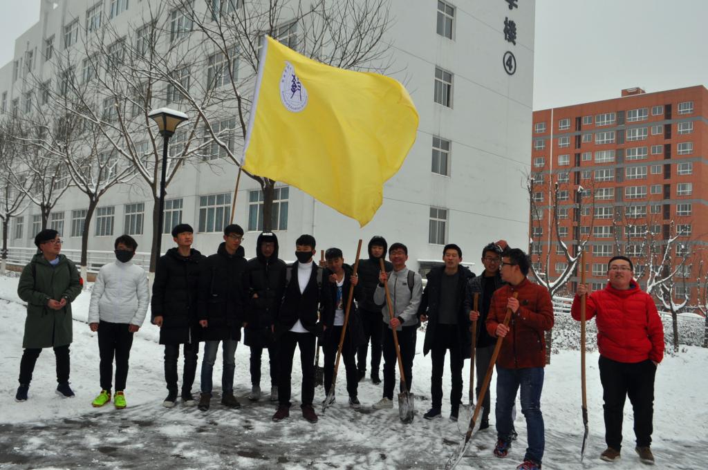集合完毕分发扫雪工具后,学生会主席徐笃魁同学分配好的扫雪区域并强调安全等注意事项,随即开始进行除雪。冷冽的冬风,天空中的飘着小雪,脚下不时打滑,在这样的天气状况下扫雪工作是很困难的,但这一切丝毫没有影响同学们的劳动热情和决心,大家热火朝天的干起来,有铲雪的、有扫雪的、有指挥的,配合默契,工作高效,用了一个多小时,完成通往一、四教楼道路上的积雪硬冰的清除,为大家打开一条“安全”通道,得到了往来于此的老师同学们的感谢。同学们的手和脸都被冻得通红,出了一身汗,但感到能为他人带来安全、方便,心里是由衷高兴的,以自己的微薄之力为寒冷雪天送上一抹如春的温暖,让这个雪天更加温馨圣洁。