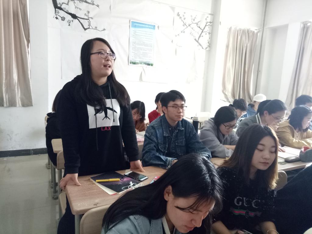首先,徐燕同学利给大家详细地讲解了四讲四有的内容以及精神,清楚明了地让大家明白了其内涵。接下来,她提出了如何争做‘四个合格’党员”,如何向优秀党员学习的问题,让大家思考并进行讨论,并随机抽取了三位同学发表讨论结果,三位同学分别从坚定信念、作为学生干部心系同学和加强自我约束等方面阐述了自己的观点。最后,徐燕同学把几位同学的观点总结出来,并举例说明,让各位同学更加明白了如何去做优秀的党员。