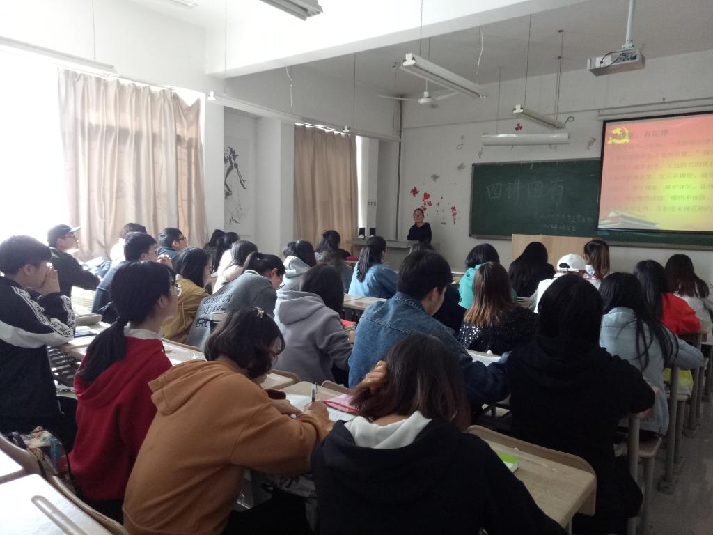 为了增强大学生思想政治教育,加强“学习十九大精神,践行‘四讲四有’标准,争做‘四个合格’党员”,向优秀党员看齐。教育科学学院于2018年3月15日在1教C401举办了“四讲四有”党课培训的有关讲座。由徐燕同学主讲。