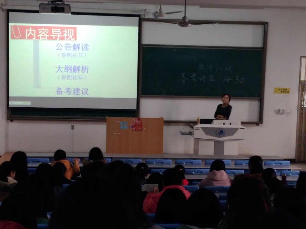 为让学生提前了解各类招聘考试有关情况,提高学生的就业竞争力,教育科学学院于2016年12月14日下午2:30在1教B3举办2017年教师招聘备考讲座。本次讲座特别邀请西安华图教育资深教师尚洁老师给同学们做辅导。教科院党总支副书记、毕业班辅导员、2013级和2014级学生200余名聆听了本次讲座。