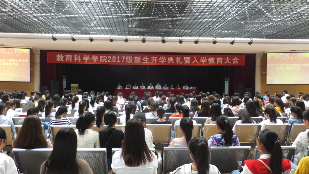 份满意答卷,在正式拉开大学生活之际,为了使同学们尽快适应大学生活,帮助学生树立专业意识,增强学生的使命感和责任感,9月24日上午9点,教育科学学院在我校大学生活动中心四楼举行2017级新生开学典礼暨新生入学教育大会。教科院党总支书记、副书记、副院长以及教师代表、辅导员老师、学生会干部参加开学典礼,与2017级全体新生共同见证这一庄严而美好的时刻。会议由党总支副书记苏群主持。